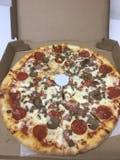 Pepperoni, sausage, onions, mushrooms, green peppers & extra cheese.